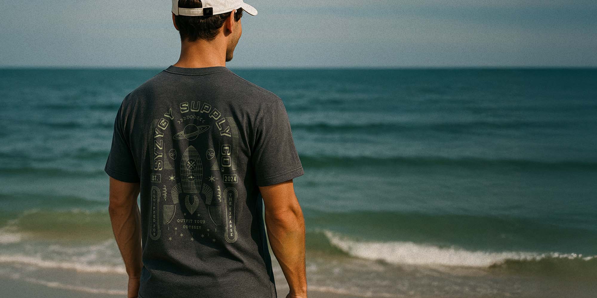 Every Syzygy tee starts on Earth but is built for the stars. Built on premium ringspun cotton crews that arrive pre-shrunk for zero warp-drive surprises. Solid colors are 100% cotton while heather hues blend in a hint of poly stardust for extra softness. A high-stitch-density knit gives our 2–4-color screen prints planet-sharp edges, and rib collars plus taped shoulders keep seams true for light-years. Certified low-impact dyes and responsibly sourced cotton let you suit up sustainably for every mission.